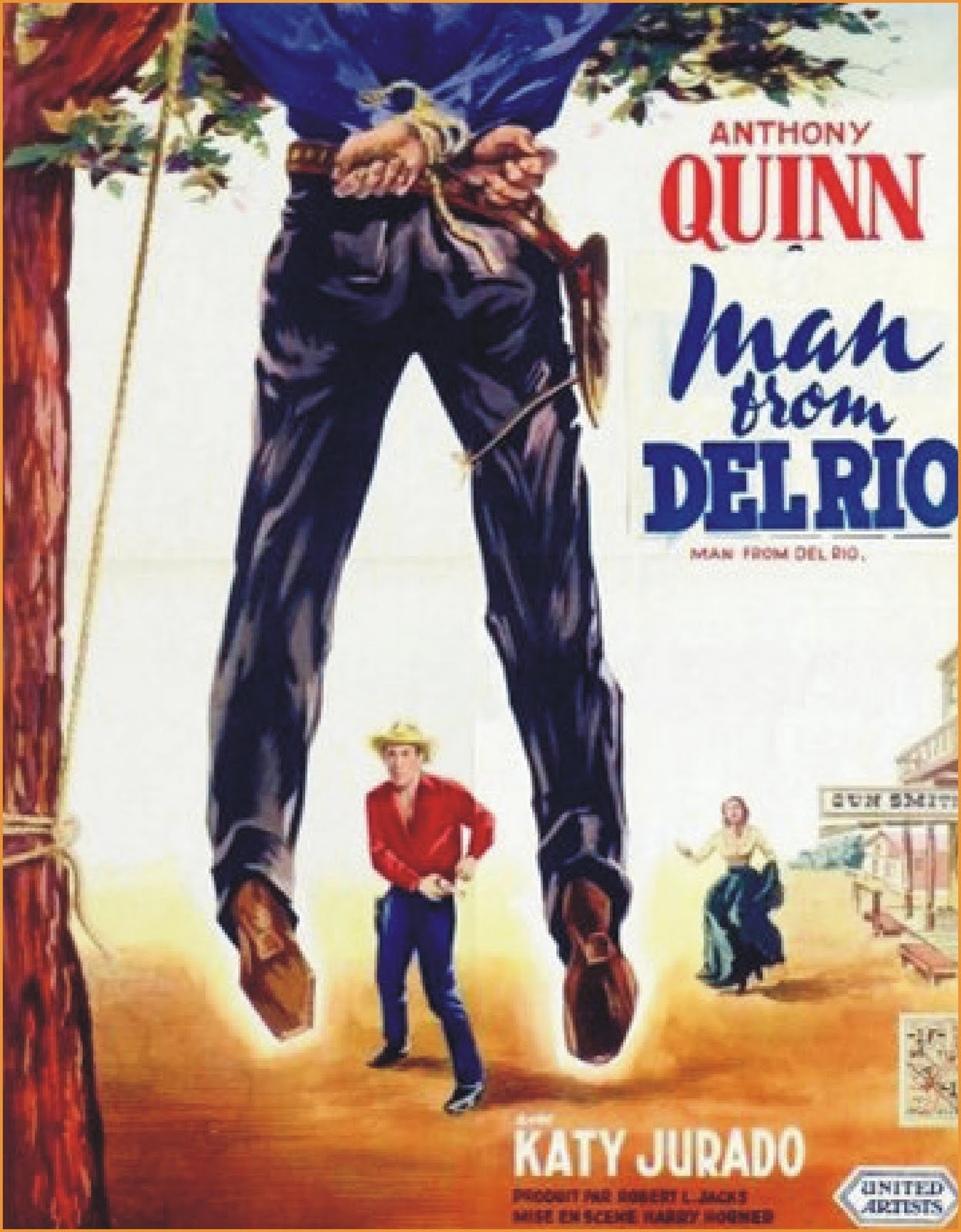 Anthony Quinn foi provavelmente o ator que teve a mais extraordinária das carreiras cinematográficas. Quinn era capaz de terminar sua participação em uma superprodução e começar a atuar em um filme classe “B” dos mais modestos como “Blefando com a Morte” (Man From del Rio). Essa é uma produção em preto e branco, com diretor inexpressivo, roteirista iniciante e elenco sem nenhum nome estelar, Nada disso, porém, impediu Anthony Quinn de proprocionar mais uma de suas grandes e costumeiras atuações. Produzido por Robert L. Jacks e distribuído pela United Artists, “Blefando com a Morte” foi, por certo, um dos filmes menos vistos na longa e bem sucedida carreira de Anthony Quinn. Para que se tenha uma idéia da pouca importância desse western, o crítico Leonard Maltin, famoso por seus “Movie Guides”, simplesmente retirou o filme das edições anuais mais recentes. Castigo imerecido para “Blefando com a Morte” que é um western diferente e com inegáveis qualidades.
